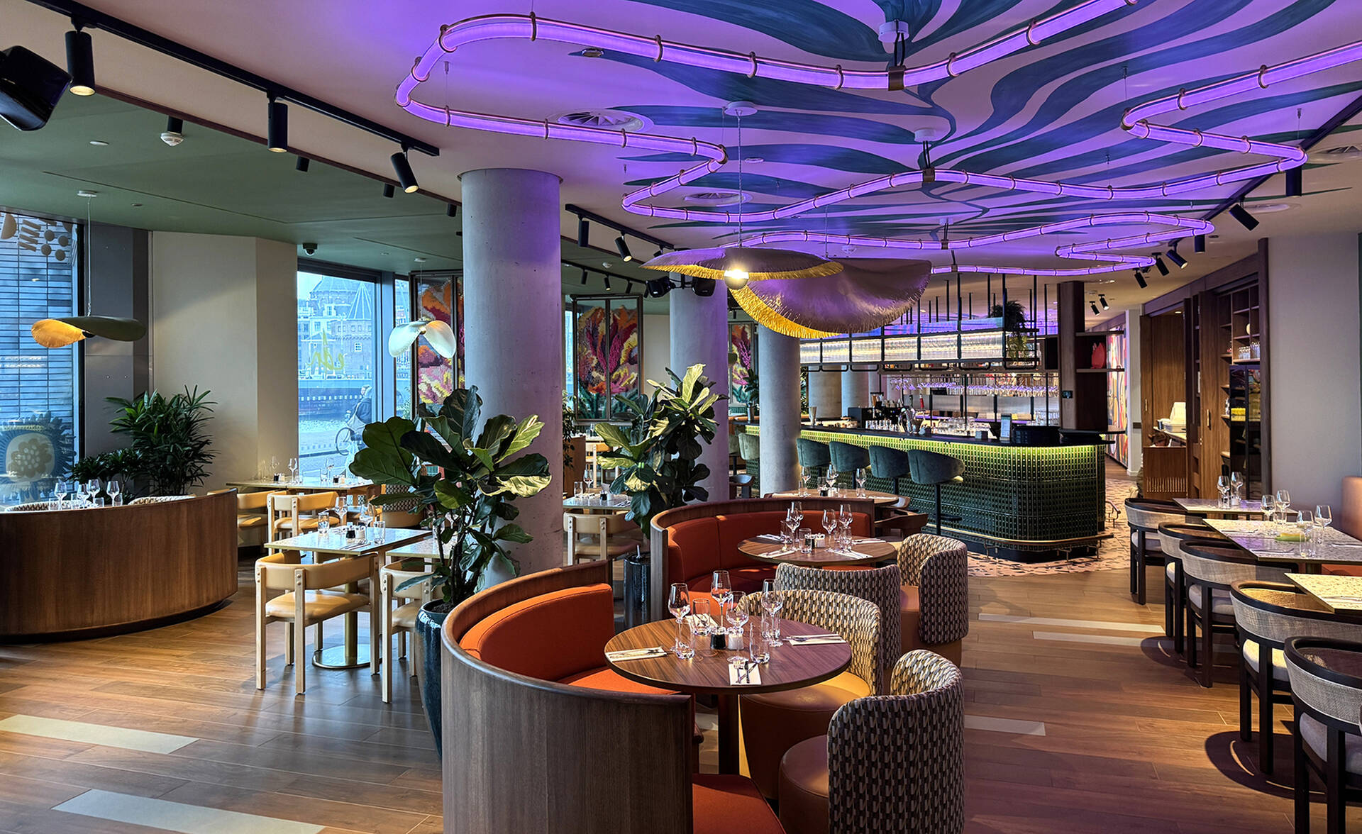 We Are EDN, the all-day concept located on the ground floor of DoubleTree by Hilton Amsterdam Central Station. With great pleasure, we collaborated with Hilton and the design team on the new We Are EDN restaurant and the hotel lobby bar. The eye-catcher within the bar is the tap wall, where guests can choose from 20 different drinks, including red and white wines, and cocktails such like the Negroni and the Espresso Martini. The We Are EDN restaurant serves an extensive breakfast buffet for hotel guests in the morning and then effortlessly transforms into a modern all-day dining restaurant for lunch and dinner. The menu focuses on sustainability and offers a tasteful mix of local and international dishes.