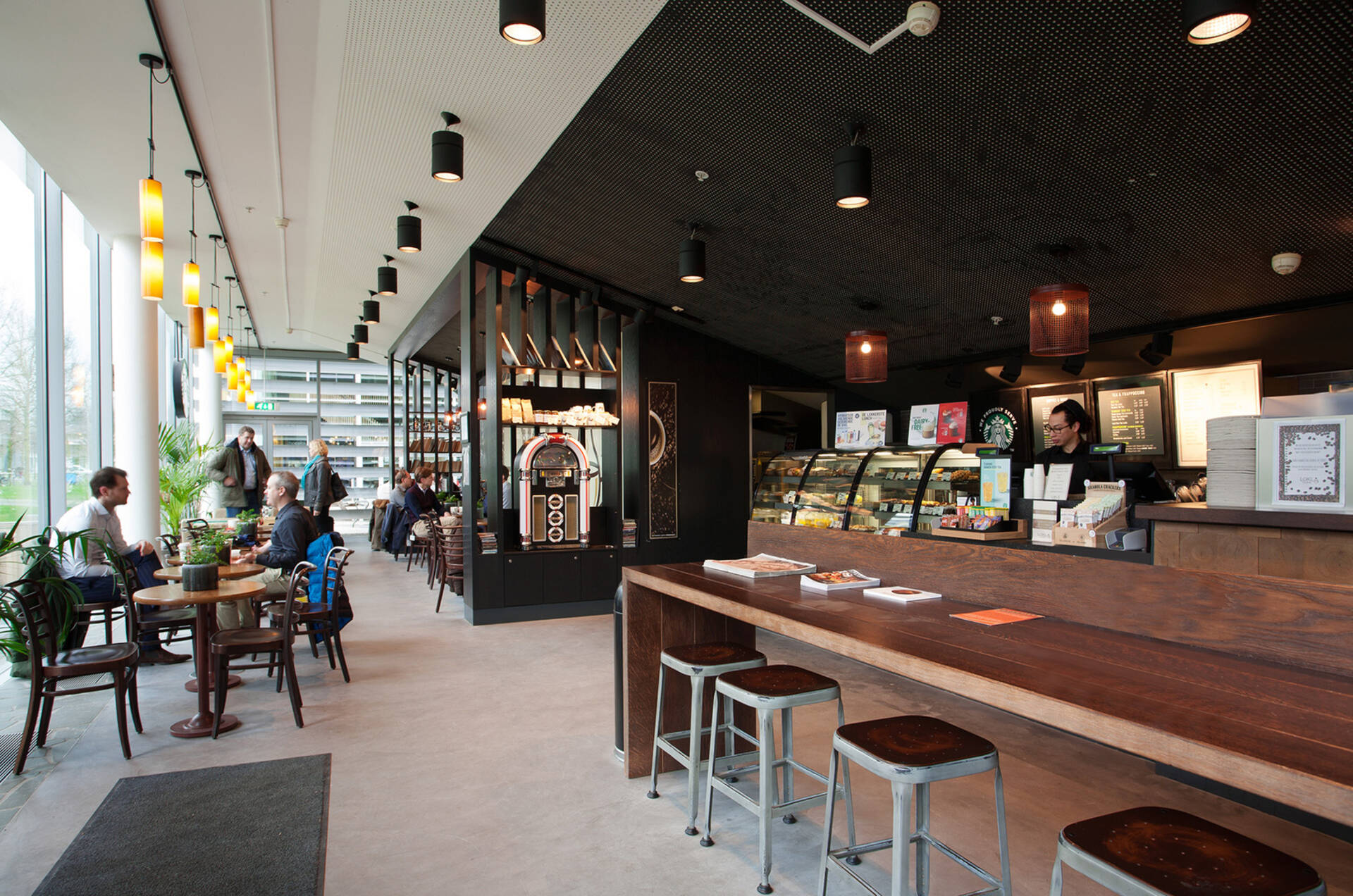 Employees and visitors can go here for breakfast, coffee, tea and snacks. After a few years, we moved away from the Starbucks concept and adapted it to Lokl.